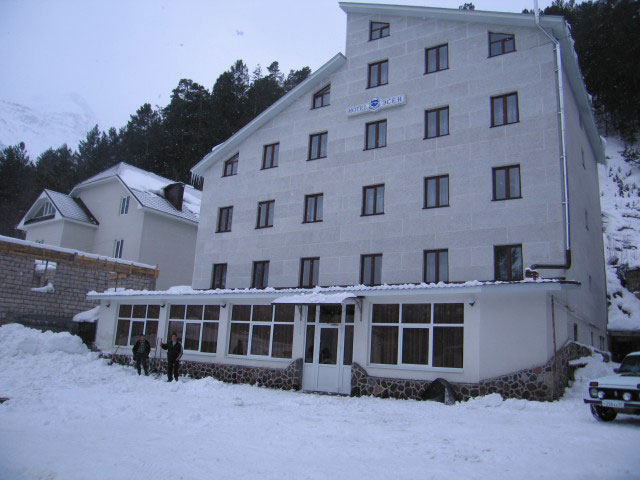 Гостиница «Эсен» это 5-ти этажный корпус. Гостиница расположилась в самом сердце Чегетской поляны, в непосредственной близости к подъемнику горы Чегет — 50 метров.